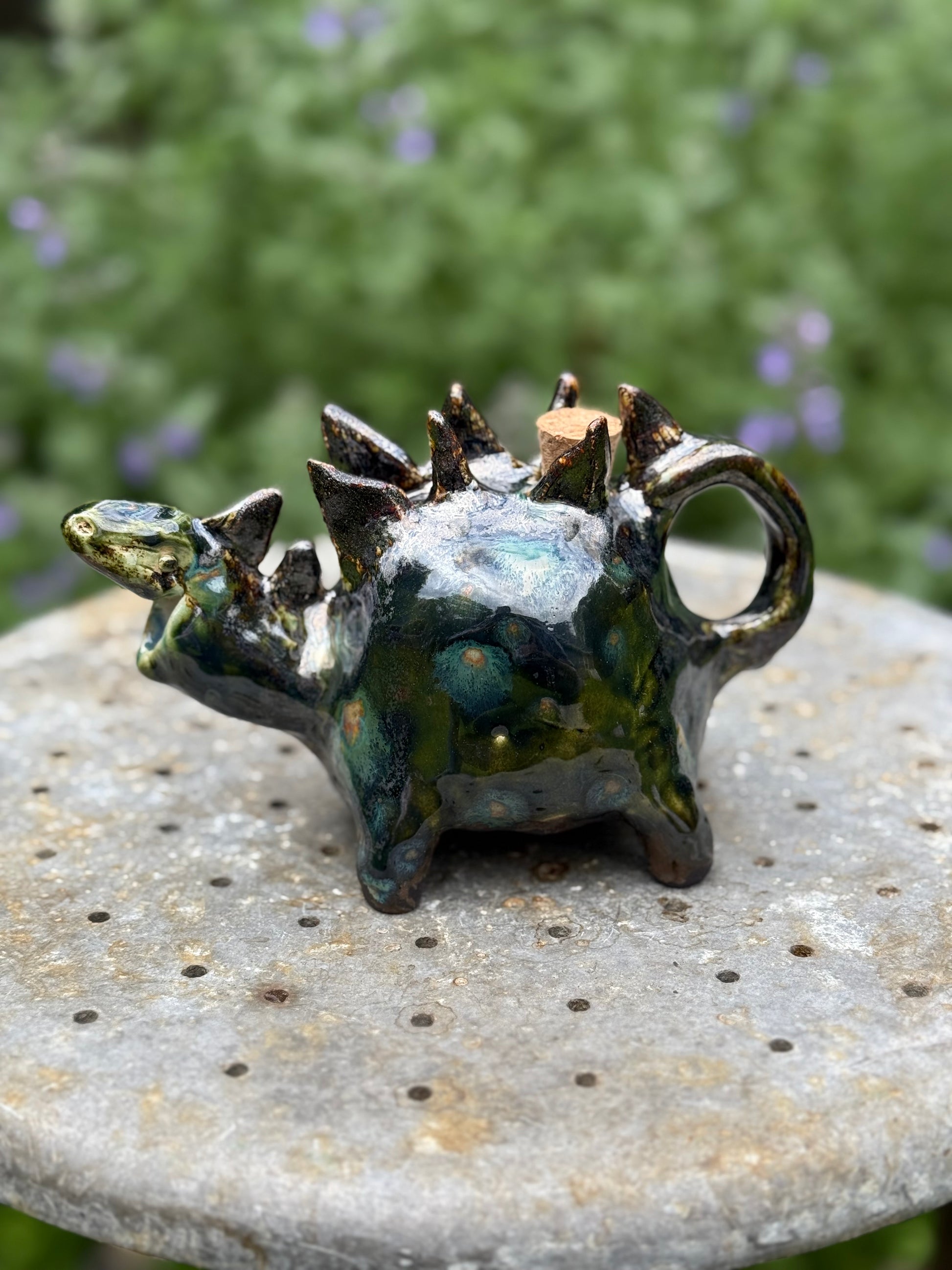 Meet the sweetest dinosaur in your kitchen! This handmade ceramic Stegapourus is the perfect syrup server for pancake mornings or elegant soy sauce dispenser for sushi nights. This sculptural pottery piece is wheel-thrown and hand-sculpted - there is only one like him.
